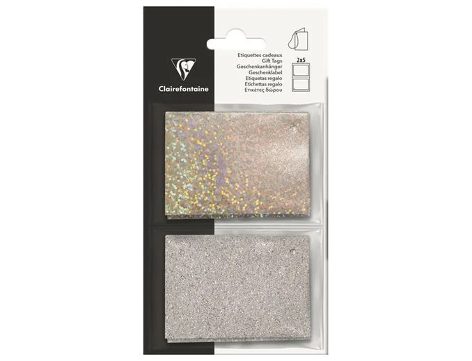Clairefontaine – 10 Étiquettes Cadeau – Paillettes Argentées/holographique – 8 X 16 Cm