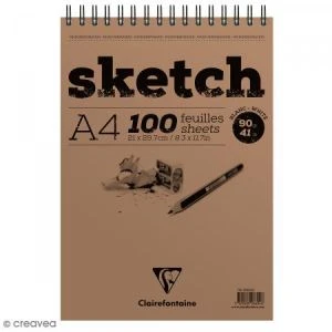 Clairefontaine 96604C – Bloc Spiralé Sketch De 100 Feuilles De Papier Croquis Blanc, 90 G/m², A4