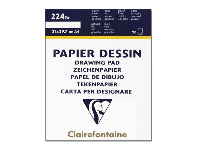 Clairefontaine – Bloc Dessin – 20 Feuilles – A4 – 224 Gr – Blanc