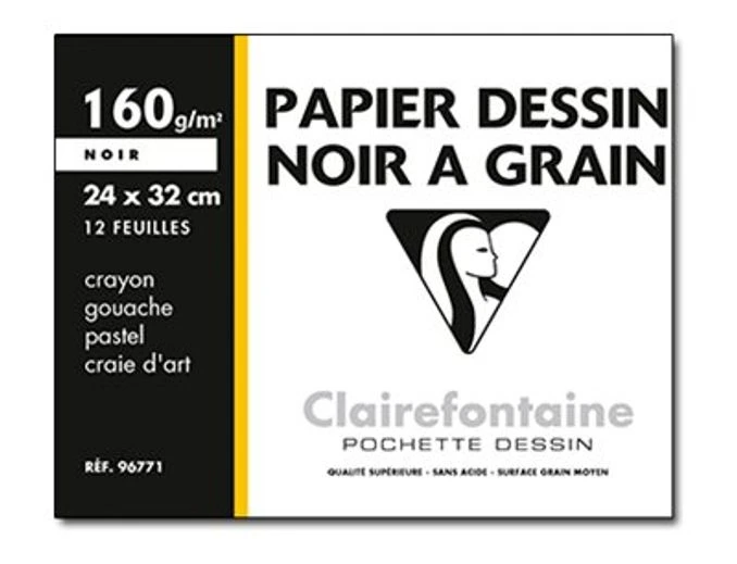 Clairefontaine Etival – Pochette Papier à Dessin – 12 Feuilles – 24 X 32 Cm – 160 Gr – Noir