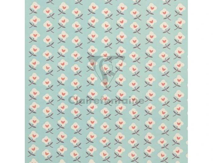 Clairefontaine Excellia Tiny Rolls – Papier Cadeau – 35 Cm X 5 M – 80 G/m² – Fleurs Et Fond Bleu